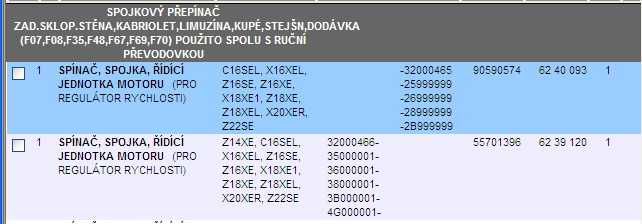 Pepo, nevím jak jsi to hledal, ale mně na Z16XE vyskakuje jen spínač 62 39 120, ten druhej 62 39 043 je pro motory Z20LET, Y17DT, X17DTL, X20DTL, Y20DTL, Y20DTH, Y22DTR.