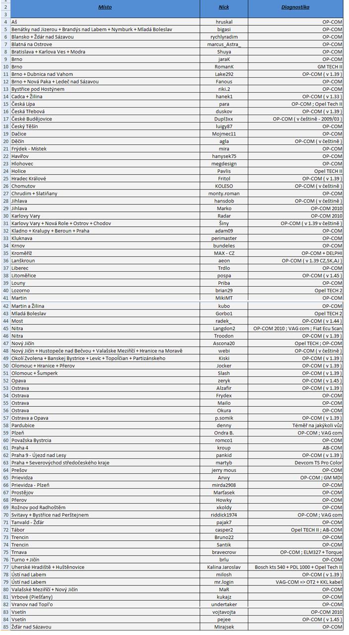Účelem tohoto topicu je sepsat seznam členů, kteří mají diagnostiku a jsou schopni ostatním ALESPOŇ vyčíst chybové hlášky 8)