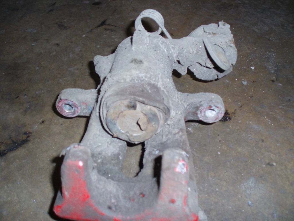 Po sundání jsem si všiml, že prasátko bylo zaseklé, ruční brzda se nevracela a kolem byla smotaná gumová prachovka, nedivím se, že to nebrzdilo jak mělo.