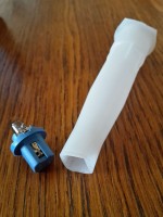 - za mírného nahřívání (teplá voda, horkovzdušná pistole, ...) postupně nasouvejte plastovou špici na tento kovový profil tak dlouho, až se vám podaří vyrobit čtvercový tvar o hraně dle patice žárovky (cca 7.5 mm)