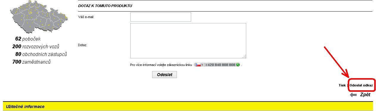 2. rolujte stránkou dolů až na část "Dotaz k tomuto produktu" a vpravo dole klikněte na "Odeslat odkaz"