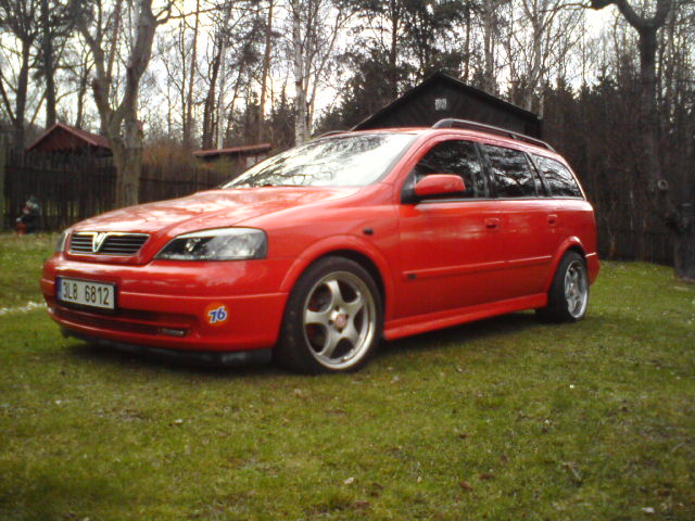 Přední masku bych dal pouze s jednou střední lajnou, jako ma astra Coupe bez znaku ale, a v černý lesklý, vypadá to s tou červenou ukrutně dobře :-) a až na pár nálepek krasavice.