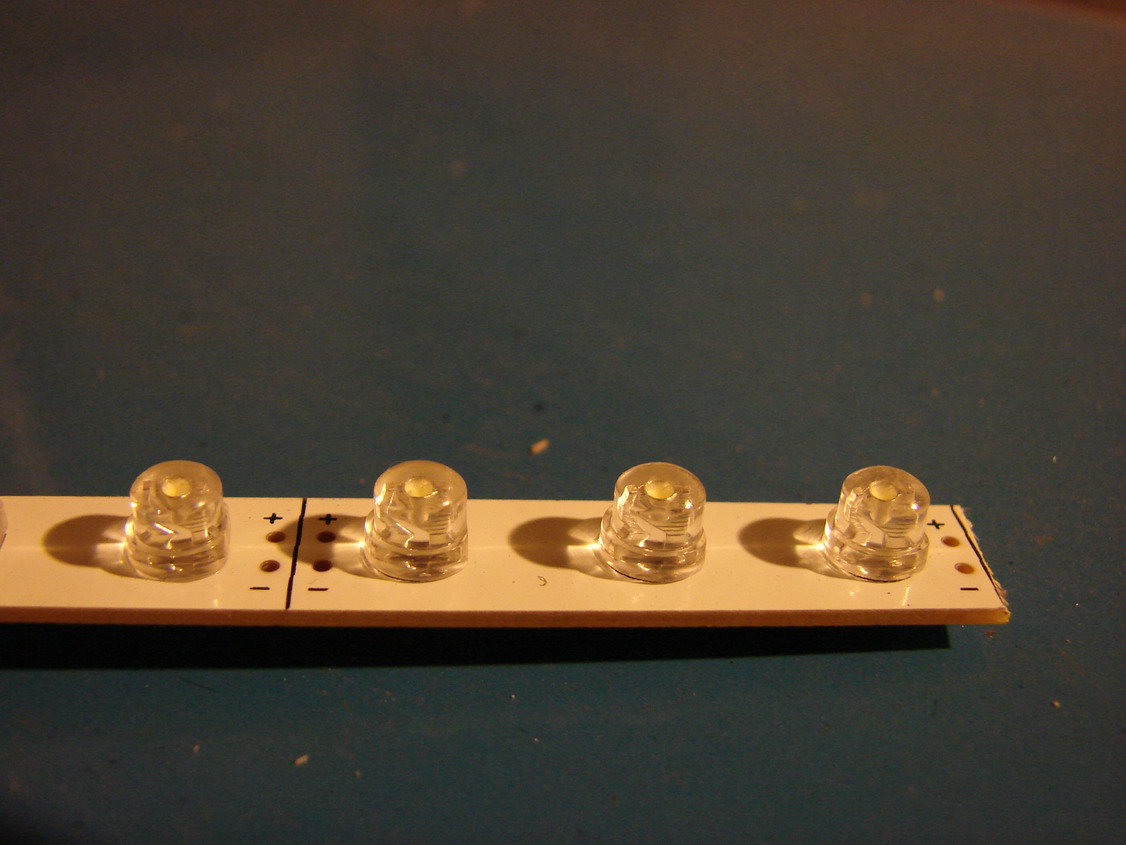 Tady bych chtěl podsvětlit okýnka, bílou LED, aby když se tam dá CD, tak posune plast na červenou barvu a dělám si iluze, že když tam dám bílou LED, bude-li tam CD, bude to prosvítat červeným plastem, tedy červeně. Jaké LED použít tady? Zde není moc místa, tak předpokládám že tu budou muset být SMD LED. A odpory?