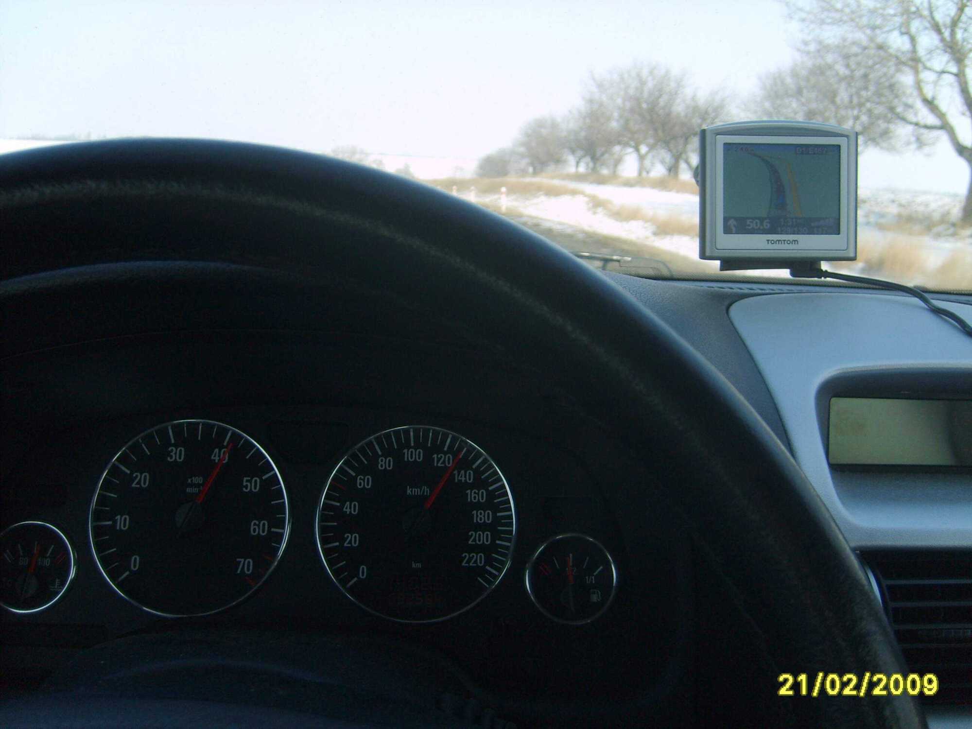 Na navigaci je to špatně vidět ale je tam 129 km/hod. Zkoušel jsem do 160 a navigace ukazovala o 3 km/h míň ale to jse se už neodvážil fotit