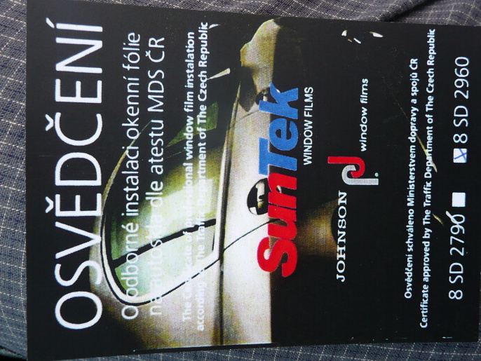 ještě můžete mi někdo ukázat jak vypadá origo známka o homologaci folií na oknech a ten průkaz co je k tomu...díky... 8)