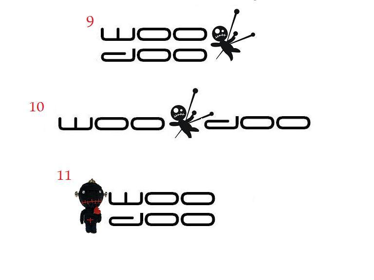 Nejzajímavější styl písma má č.1, ale k němu se nehodí ten ďábel a i to rozdělení WOODOO je moc od sebe