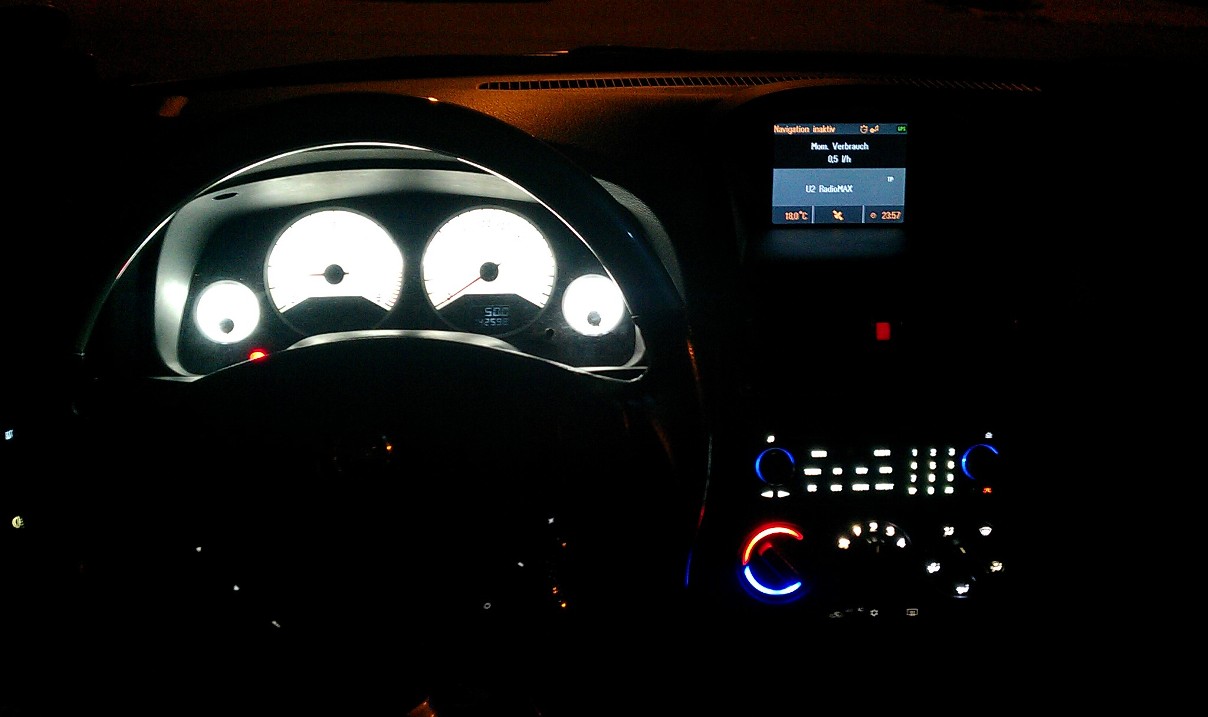 - upravene podsvietenie pod nohy(LED sufitky v objimkach ako v std. kufrovom osvetleni, cele v krytoch nad pedalmy)