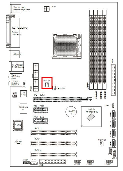 mojmec: na CPUFAN1 mám větrák na CPUčko a na NBFAN1 mám větrák na chipsetu, tekže mi zbývá jediná volný, ten v červeném čtverci