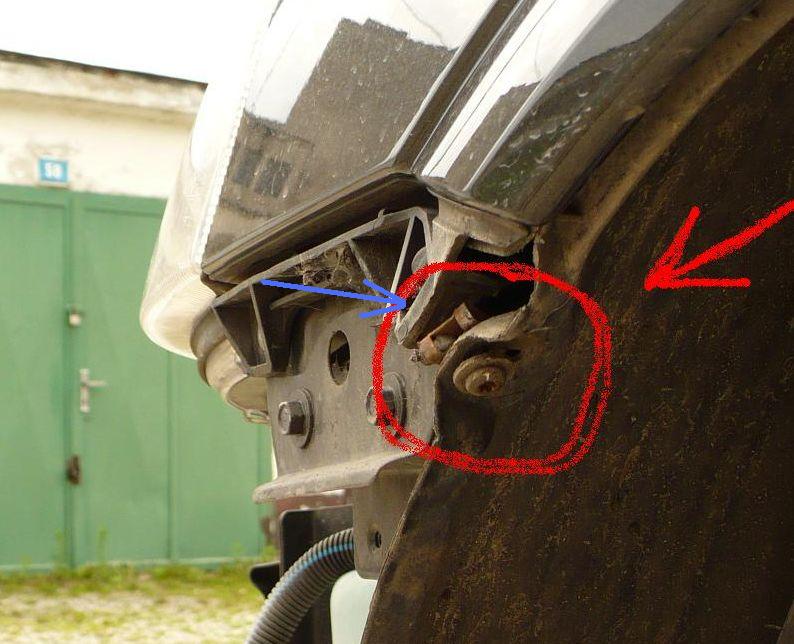 . Tak potom co jsem na to vystříkal skoro celé WDéčko jsem zarval a protočil se mi tem kovový bazmek, v kterém je našroubovaný ten torx. Tím jsem zjednodušeně řečeno rozjebal ten přinytovaný platový držák (viz foto, modrá šipka). Teď mi někdo řekněte jak z toho ven. Teď už nemám lépe řečeno ten nárazník k čemu přichytit