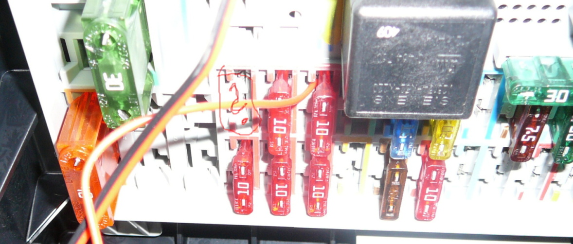 Pozice označena otazníkem je napájení pravého potkávacího světlometu. V tvém případě tedy napájení ballastu.