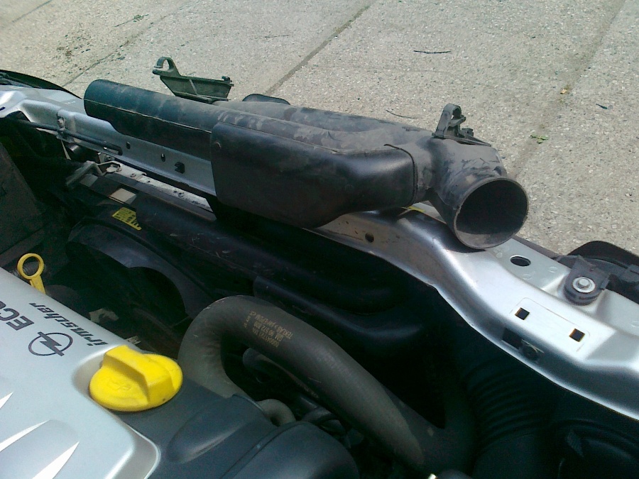 , no ve Tvém případě se asi jedná o plastovó róru sání a jestli Ti v ní šplóchá, tak si asi jel v dešti, jinačí vysvětlení nemám, alespoň u mého motoru bych to tak viděl. X18XE1. Mrkni na fotku a jestli se jedná o tu zakroužkovanou plastovou věc tak je to jen taková vohlá trúba.