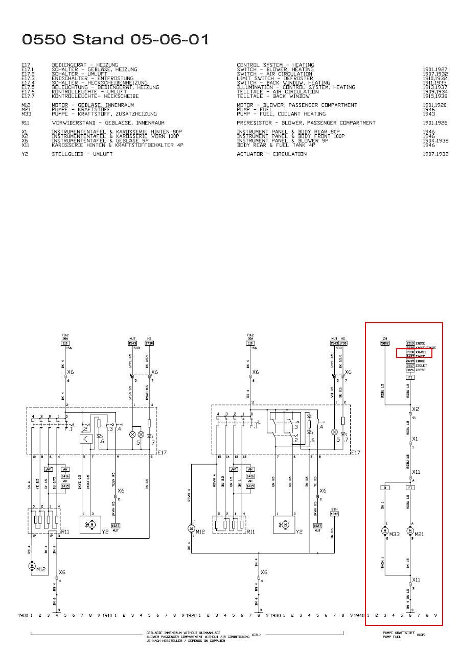 Poprvé jsi namáčkl relé K16 a čerpadlo se rozjelo - takže to vypadá, že čerpadlo funguje. Jenže: potom jsi zkoušel to samé a pumpa už nic neudělala - takže dle schemat je problém buď v pojistce F6 (20A) nebo v samotném čerpadle - nic jiného tam kromě konektorů X1, X2 a X11 v cestě není. Nezbude nic jiného, než měřit a měřit...
