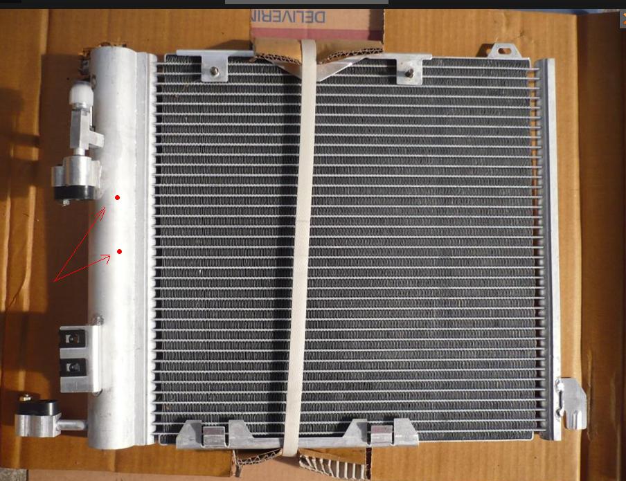 Klima byla plněna s barvivem a jediné místo kama to všechno uteklo bylo na chladiči pod vrtulí. Tak to vyměním tu cívku. Výborná cena Denny. Tak to ji vezmu od tebe.