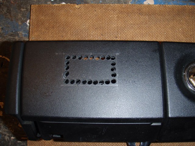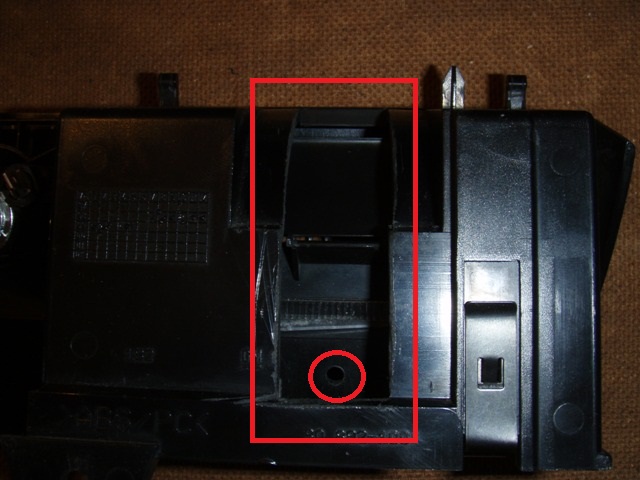 Možný návod na měření teploty.Jelikož já ani manželka nekouříme tak jsem využil popelník.Zakoupil jsem teploměr(je jich plno na aukru),který možno osadit(moc na výběr nebylo) .Měření,vrtání,broušení..........Na zadní straně jsem vyřezal kus popelníku na volný pohyb kabelu (červený obdelník) při otevření popelníku(třebas při výměně batererií)při protažení čidla třebas tunelem.....Nakonec jsem tohle nevyužil a čidlo umístil do prostoru pod popelník(distanc vyroben z hmoždinky).I když by byla možnost po zjištění hodnot teploměr napojit na palubní síť(zásuvka popelníku),tak jsem nechal napájení z baterií (vzhledem malého odběru a hlavně pravděpodobnému východního původu teploměru
