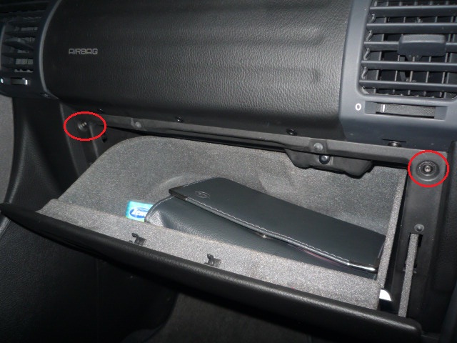 a nakonec vyšroubujeme ještě dva šroubky, které drží plastový kryt prostoru nohou spolujezdcce - kryt vytahneme směrem k sedačce