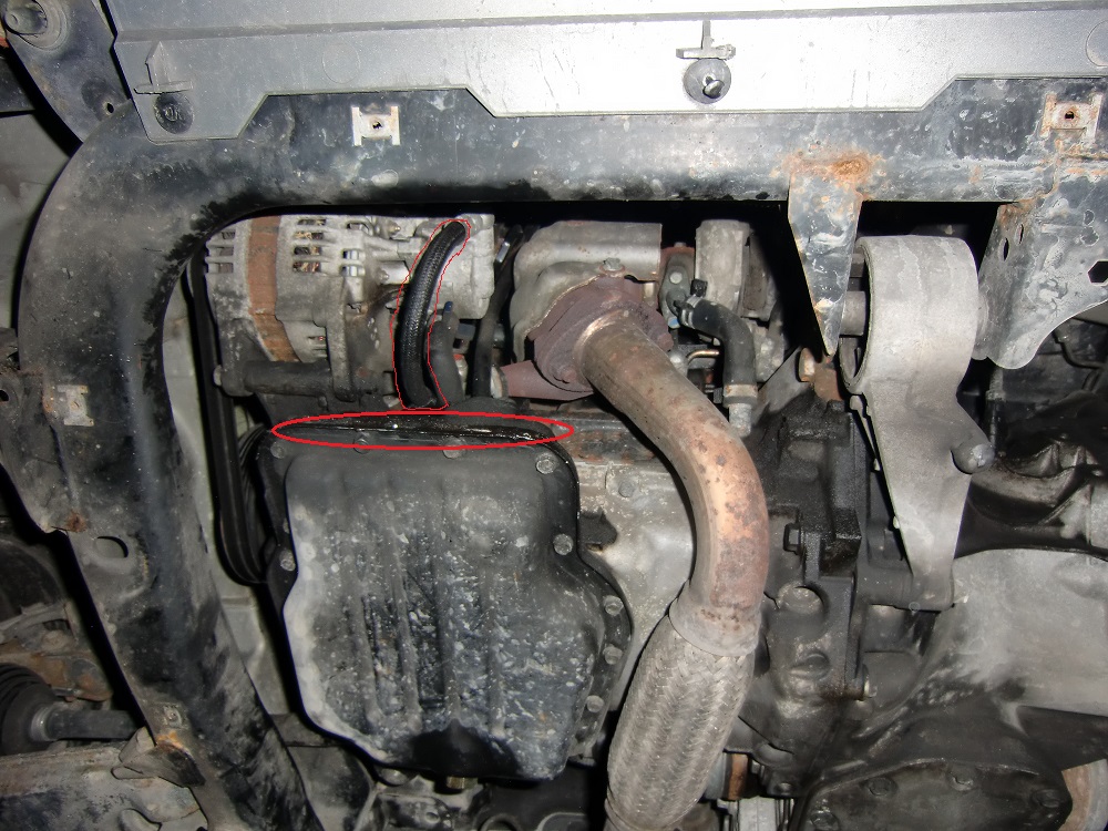 Najmokrejsia bola hadica vyznacena na obrazku. Z nej to kvapkalo na spodny kry motora.