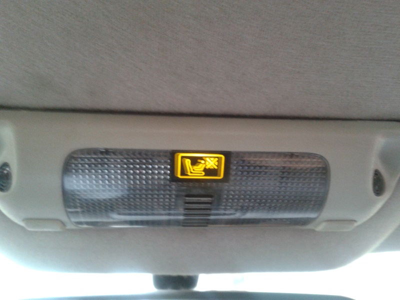 Na sedačce spolujezdce musí být štítek s informacemi o umístění senzoru do sedačky a ve stropní lampičce kontrolka obsazenosti sedadla spolujezdce.