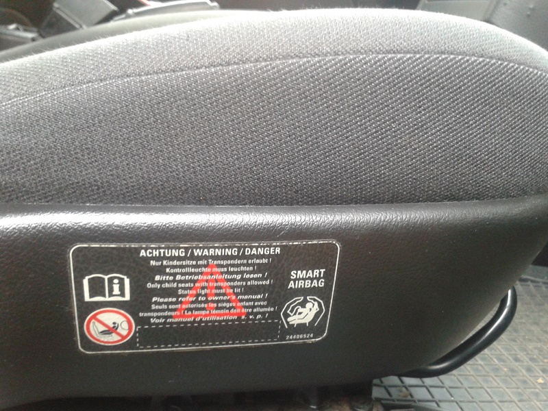 Zdravím vás jsem tu nový . Mám nejaké info o té detekci sedacky plus foto . Opel to nazývá SMART AIRBAG je to nalepené zboku sedačky viz foto a doplnene kontrolkou deaktivace v případě použití té original detské sedačky . Je to taková dečka viz foto . Použitím a stářím se zvlní a dojde k přerušení jednoho či více okruhu což ŘJ airbagu vyhodnotí jako chybu a rozsvítí kontrolku . V místě titěrné praskliny jsem odškrábal horní vrstvu a vyspravil vodivým lakem s obsahem stříbra , prostě to nelze letovat je to jak zalaminovaný prach v několika vrstvách . Vydrželo to asi rok , vozím kolegu do práce a má asi 100kg tak to asi ruplo znovu . Včera se podařil sehnat použité čidlo za 500kč z vrakoviště použil jsem z opel Zafira , nechal smazat chybu přes diagnostiku a vše OK. Jde to koupit v oplu ,ale chtějí za to asi 12000kč . Myslím ,že spoustu lidí o tom neví a řeší to letováním konektoru pod sedačkou spolujezdce , prostříkáváním kontaktolem atd . Tak se prosím podívejte zda nemáte zboku sedačky spolujezdce nápis SMART AIRBAG když ano tak vás muže zlobit právě toto .