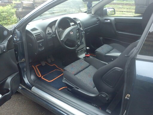 Sedačky obyč, hadrové, plně nastavitelné, ale o výměně za kůži nebo polokůži neuvažuju. Manuální klimatizace, nastavitelný volant, palubní PC, 4x airbag, el. okna a zrcátka, loketní opěrka, autorádio KENWOOD, subwoofer MAGNAT 500W a zesilovač TOXIC, ale jeho výkon neznám. Něco o exteriéru. Kola AEZ R17, sportovní laděný výfuk FSW s dvoijtou koncovkou, snížený podvozek pomocí pružin. V nejbližší době bude štelovák od JOMU. Na ty naše silnice bohatě stačí. Přední nárazník vyměněn za laminátový spojler, ale chtěl bych to vyměnit zpátky na origo. Barva modrá metalíza, nedávno komplet po rozleštění. A teď k plánovaným úpravám a opravám. Takže jak už jsem psal, asi první bude podvozek. Je spíše nutností než chtíčem. Dále asi fólie na okna. Ještě bych se chtěl pošťourat v motoru a trochu zvýšit výkon, ale zatím nemám plán jak a čím ho zvýšit