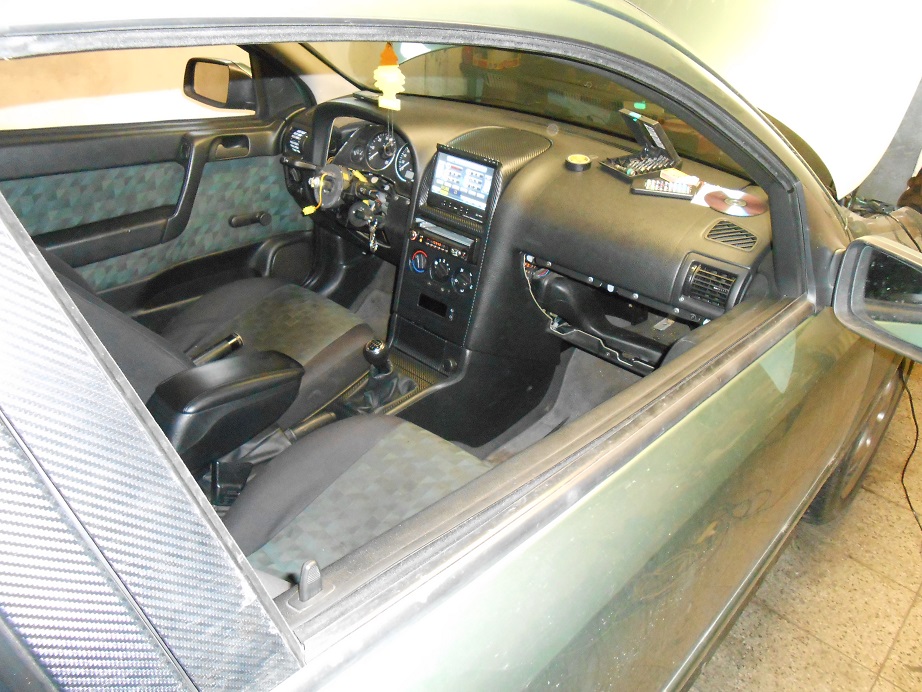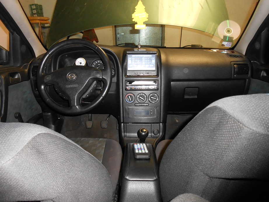 ... nechtěl jsem přijít o teploměr, hodiny a datum na displayi, protože to je velmi praktické. Tak jsem jej zalaminoval na volné místo :). Zbytek palubky polepen carbonem...