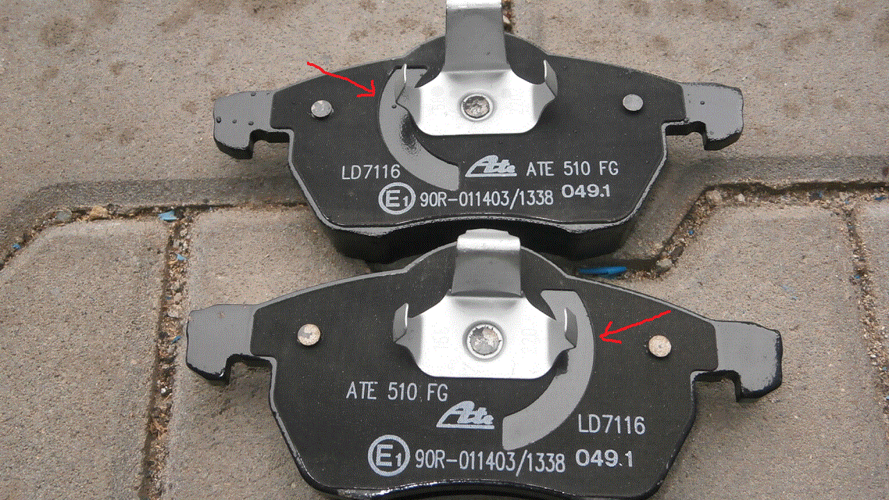 Měním přední brzdy, kotouče nové i desky, jen nevím jak orientovat destičky.