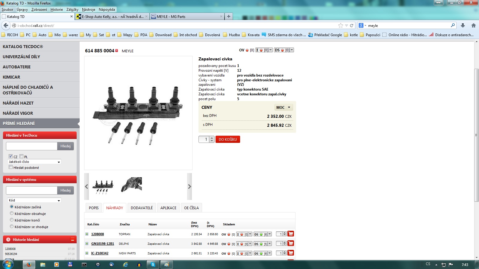 po nastartovani a ujeti par metru se me rozsvitila kontrolka emise/katalizatoru a kdyz jsem pridal plyn tak skubal motor. skubani pozdeji preslo do vibraci. dnes sem byl na diagnostice a vynechava zapalovani na druhem valci. po vsemoznym promerovani a kontrolovani diagnostika jeste napsala, ze se smes zapaluje pri chladne teplote, nebo tak neco podobnyho. uz si to nepamatuji. svicky jsou OK, menili se pred cca 2000km, takze nas napadla samozrejme zapalovaci lista. pan mechanik me hned ukazoval ceny a co je skladem v nejakem externim sklade. nejlevnejsi byla nejaka japonska za cca 4900,- bez DPH a pak tam mel vyrobce Hella za cca 6000,- bez DPH a nakonec nejakou za skoro 7000,- bez DPH vyrobce uz nevim. no malem me jeblo