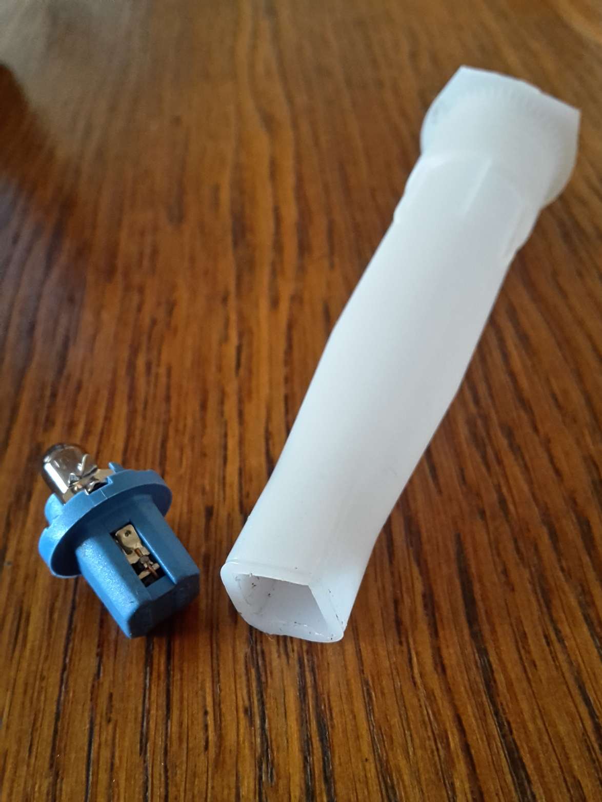 • Nainstalujte novou žárovku a vše zkompletujte. Já ji musím teprve koupit -- jedná se o žárovku výrobce OSRAM 12V 1.2W s paticí BX8.5d (někde píšou jen B8.5d).
