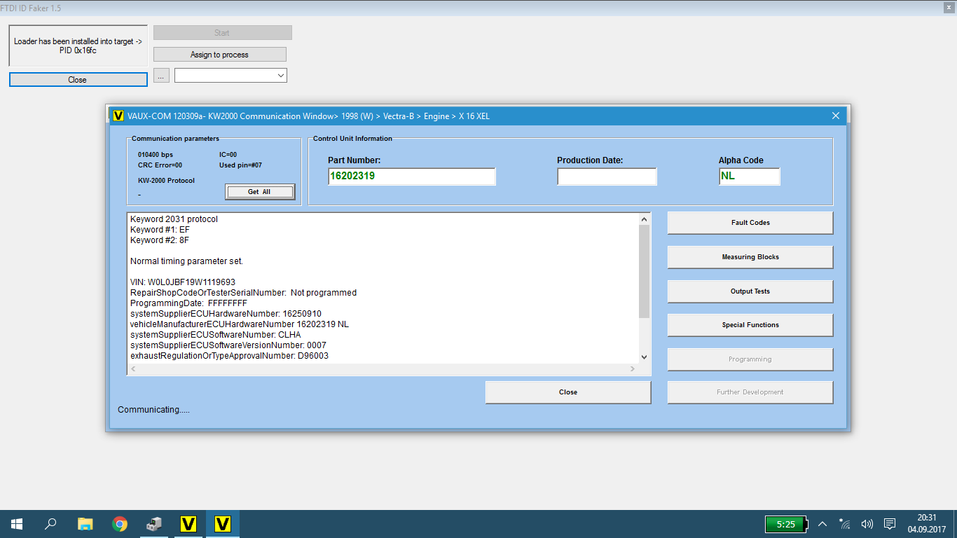 V autě jsem to připojil, ale moc se tomu nechtělo. Nakonec jsem nastartoval a povedlo se mi smazat chybu airbagu (mojí vinou při demontáži volantu a zapomenutí připojení baterie).