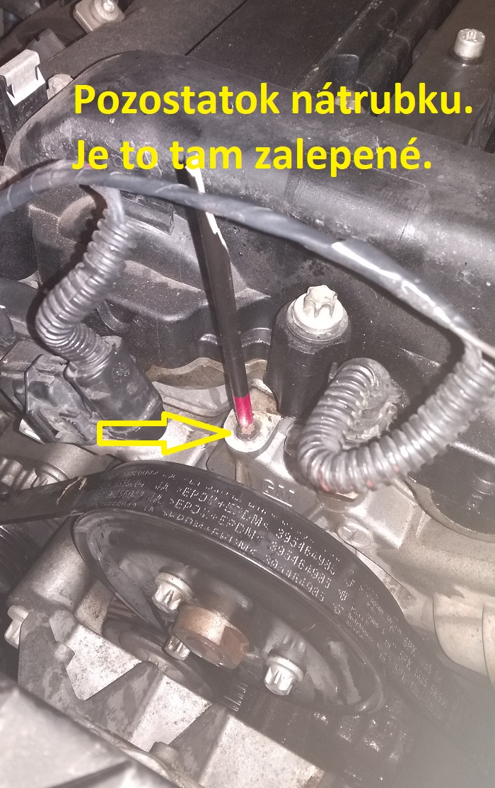 Pri demontáži veka ventilov mi praskol plastový nátrubok, cez ktorý tečie chladiaca zmes na ohrev škrtiacej klapky :x