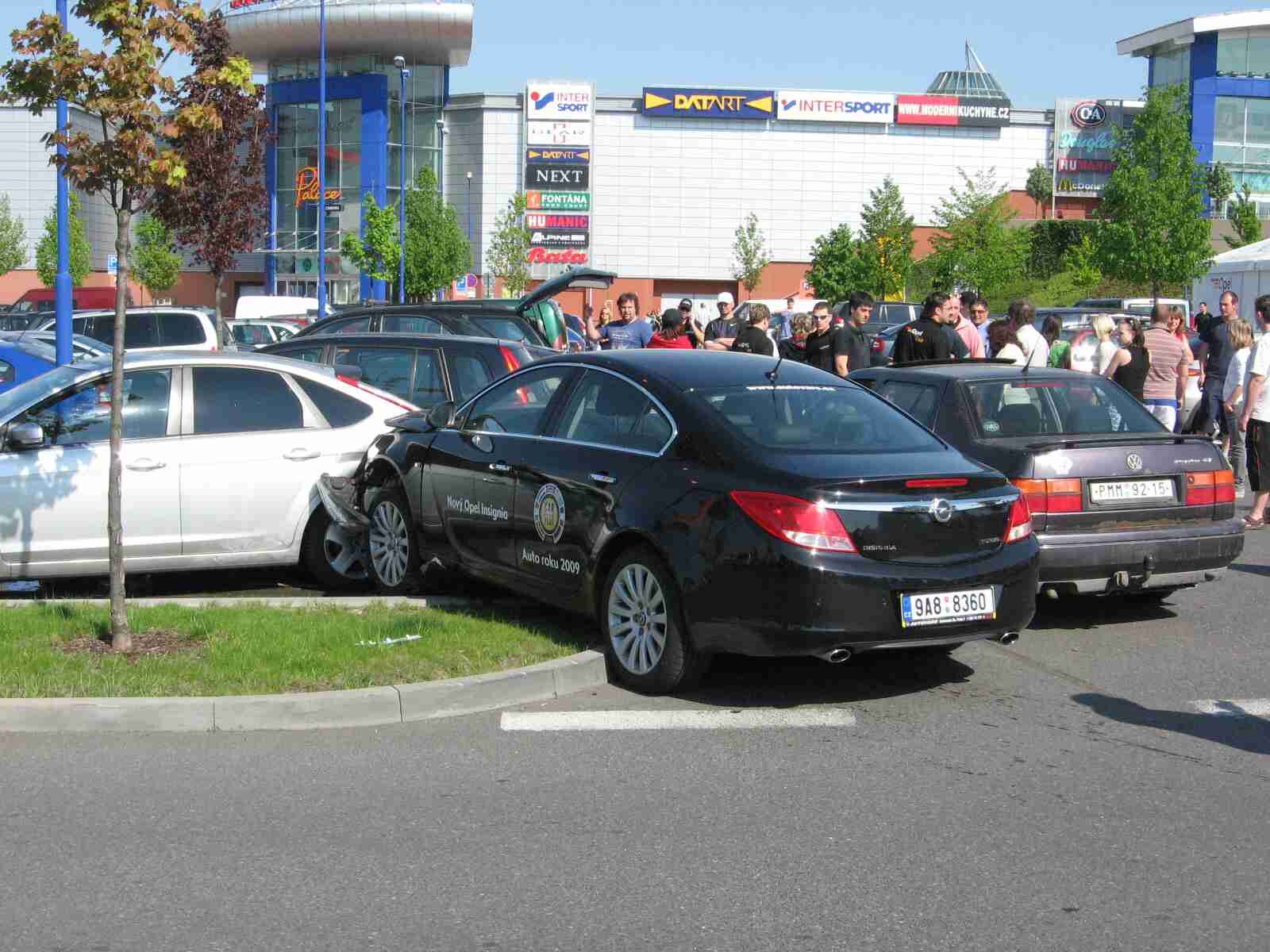 Ta Insignia trefila to Vento a od něj se odrazila do toho stříbrného Focuse. Ten se posunul a trefil ještě vedle dalšího Forda (Fusion). Vepředu moc nechybělo, aby se zastavil ten Focus o Golfa