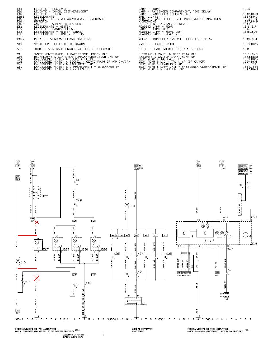 Je zapotřebí přerušit oba dva vodiče (bo multitimer) a natáhnout ze stropní lampičky šedý vodič 0,5mm. Rudý 0,5mm bys mohl vytáhnout z pojistkovky z pojistky F1.28