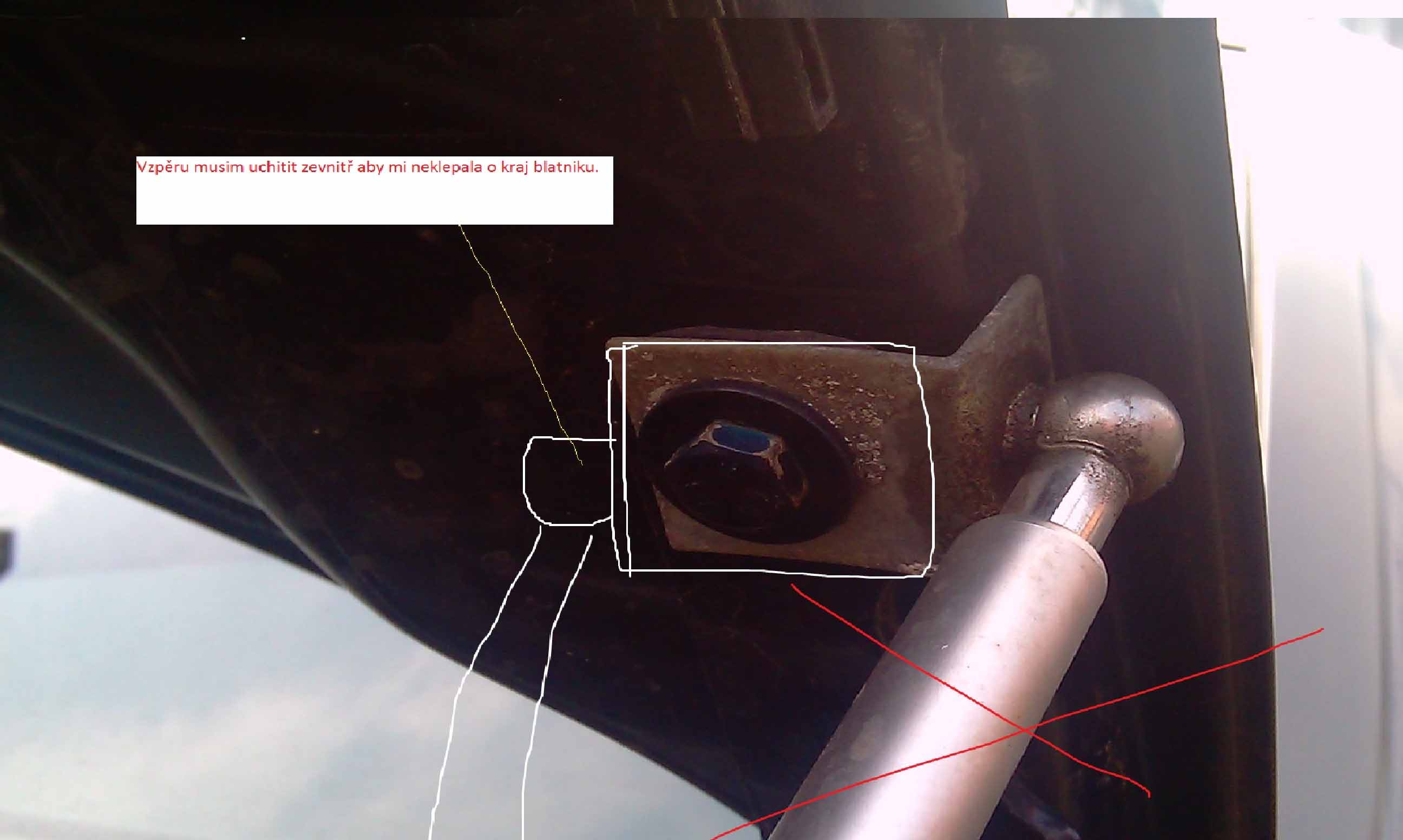 za 2 spodni drat tam nedavam abych je mohl vyhačit jak budu potrebovat otevrit kapotu uplně. poněvač vzpěry chci aby mi držely kapotu přivřenou.