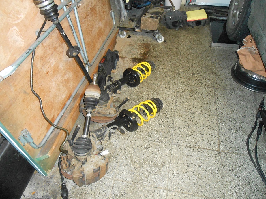 .. výfuk dostal kvalitní vypalovací matovku. Jeden menší problém z mnoha co vás potká při implantaci motoru z F je jiná příruba na vývěvě... Dnes už žádný problém díky vývoji materiálů. Dále jsem přehodil Weitec pružiny - 60mm ...
