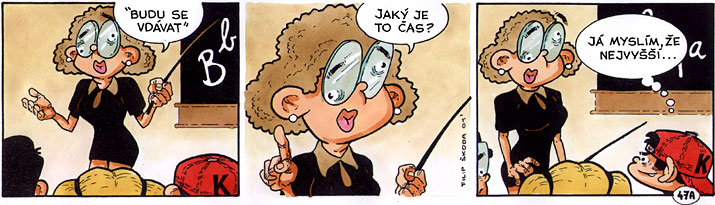Na první hodině tanečních. Jeden mládenec tančí s jednou krásnoudívkou a aby se odreagoval, tak jí pořád mačká na knoflík od podprsenky.