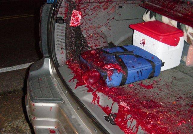 odemkl kufr, vytáhl motorovou pilu Husqvarna tak velkou, že jsem tak velkou lištu