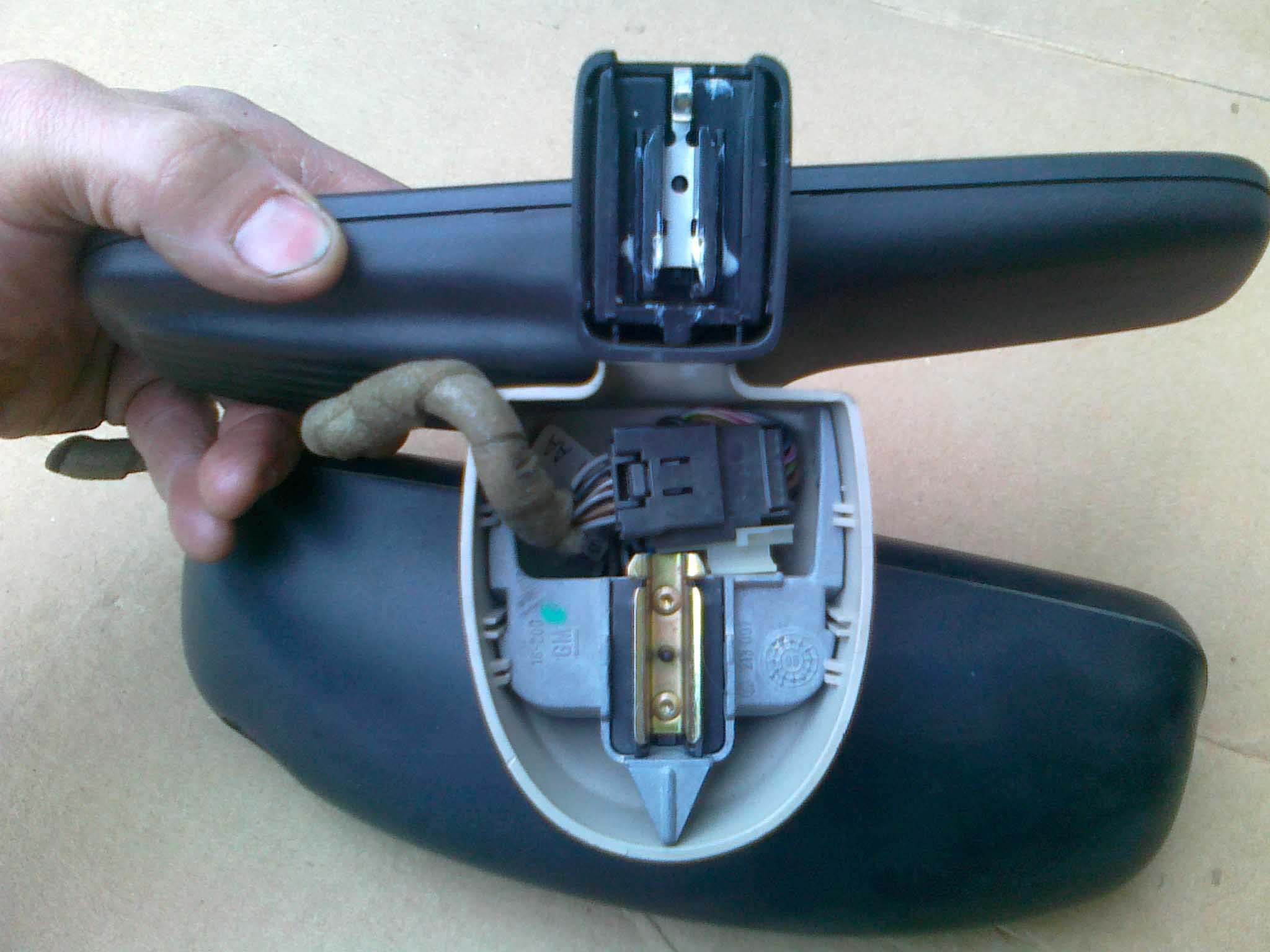 Zrkadlo som kupil, len mi prislo poskodene, jeden svetelny senzor je odlomeny, zlomeny na polovicu, kusok z neho chyba, a tym padom mi nestmavuje zrkadlo, dioda na prisvetlenie interieru mi v noci ked je vonku tma svieti...cize ten senzor smerom ku celnemu sklu je funkcny, len ten senzor co je smerom ku zadnemu oknu, a snima svetlo zo zadu, tak z neho kusok chyba....Je to daka foto bunka...foto dioda...3 kontaktova....