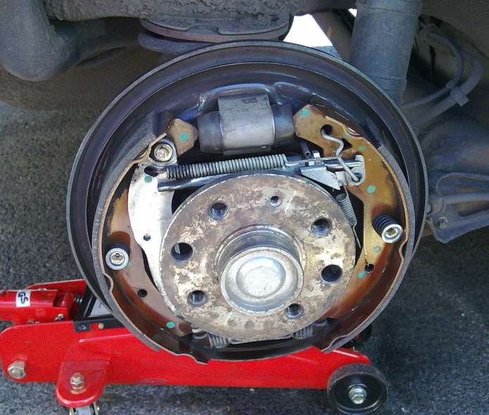 Já jsem se jal dnes zkontrolovat brzdy,v předu nemilé překvapení :? ,desky na doraz,kotouče budou muset ještě jedny vydržet,alespoň vzadu jsou brzdy asi nové ,bubny zatím na černo než budou alu.Jinak spodek vypadá celkem dobře. 8) :D