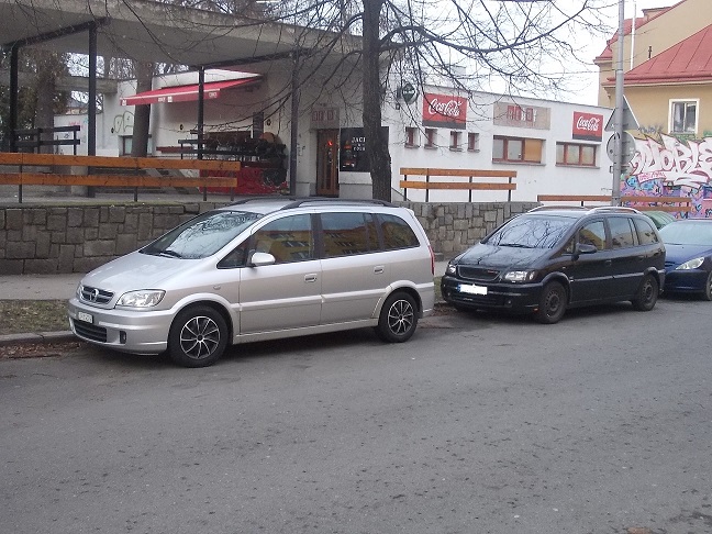 Už jsem to auto viděl v Troppau několikkrát, ale nevěděl jsem kde parkuje a proč sem stále jezdí? Třeba tady má ženskou-známost a třeba je to dovoz a majitel to jen nepřihlásil do CZ evidence. Každopádě čistokrevné OPC to není, je to 2.2 beznín s paketem. Má i parkovací asistent a DIGI klimu. (mimo to, před tou švýcarskou Zafirou stojí Fóbie už bez nálepky na okně.)