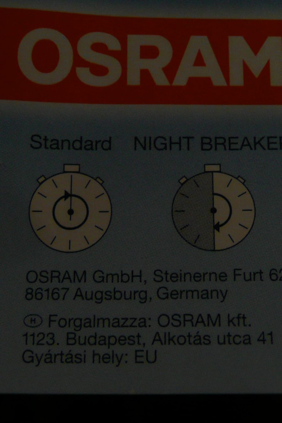 tak jelikož čekání na dodávku z internetového shopu bych nevydržel tak jsem ty Osramy Night Breaker koupil dnes v mototechně i když za vysokou cenu a musím říct že svítí naprosto suprově, při výměně jsem v jednom světle měl Philips BV a v druhem už Osram NB a NB má znatelně jasnější světlo i když fakt je že philipska už měla 2 roky. I pří jízdě je skutečně poznat velký rozdíl NB svítí lépe! Tak uvidíme jěště jak to bude na mokré cestě, ale myslím si že mokro to světlo sežere i tak. A pokud si někdo stěžuje že málo vydrží tak se podívejte na obal, výrobce nijak neskrývá poloviční životnost. Aspon já tak chápu ten symbol.