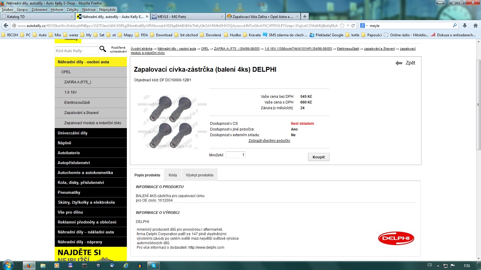 po nastartovani a ujeti par metru se me rozsvitila kontrolka emise/katalizatoru a kdyz jsem pridal plyn tak skubal motor. skubani pozdeji preslo do vibraci. dnes sem byl na diagnostice a vynechava zapalovani na druhem valci. po vsemoznym promerovani a kontrolovani diagnostika jeste napsala, ze se smes zapaluje pri chladne teplote, nebo tak neco podobnyho. uz si to nepamatuji. svicky jsou OK, menili se pred cca 2000km, takze nas napadla samozrejme zapalovaci lista. pan mechanik me hned ukazoval ceny a co je skladem v nejakem externim sklade. nejlevnejsi byla nejaka japonska za cca 4900,- bez DPH a pak tam mel vyrobce Hella za cca 6000,- bez DPH a nakonec nejakou za skoro 7000,- bez DPH vyrobce uz nevim. no malem me jeblo