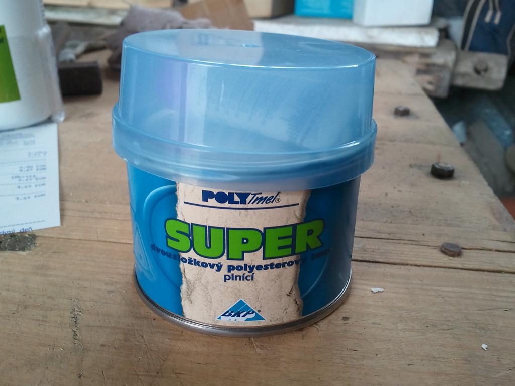 noo ku tmelu mas este aj taku malu flasticku v nej je to tvrdidlo a to je cervenej farby , proste som vybral stvrtku tmelu na to viecko a dal som stvrtku tvrdidla rozmiesal spachlou kym sa nevymiesalo tak ze nebolo vidno to cervene tvrdidlo a potom som uz len nanasal