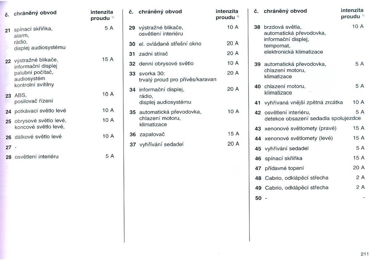Dám sem čísla el. obvodů v závislosti na čísla pojistek, snad by to mělo sedět, i když některé obvody se mi až tak úplně nezdají.