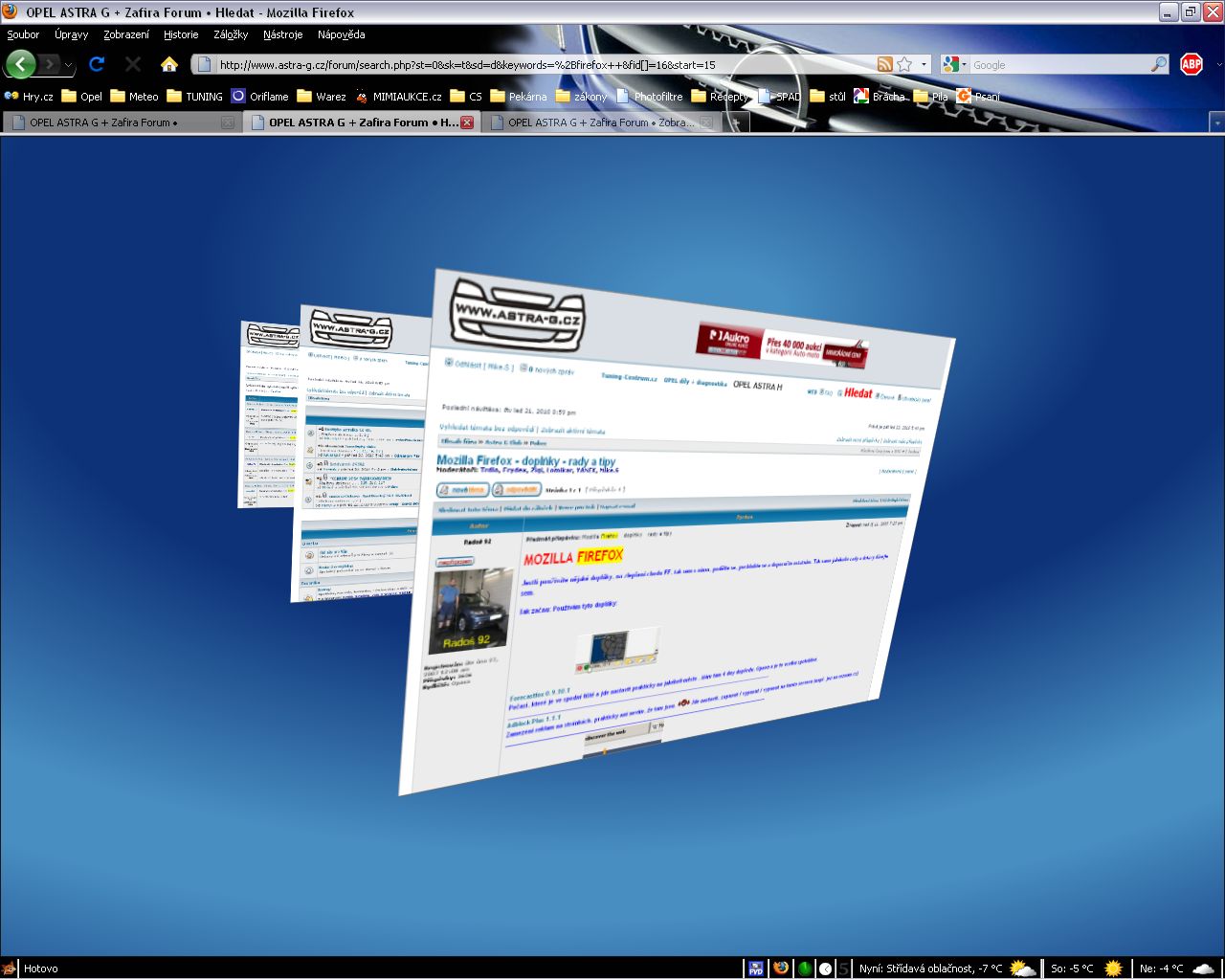 Počasí, které je ve spodní liště a jde nastavit prakticky na jakékoli město . Mám tam 4 dny dopředu, Opavu a je to vcelku spolehlivé.