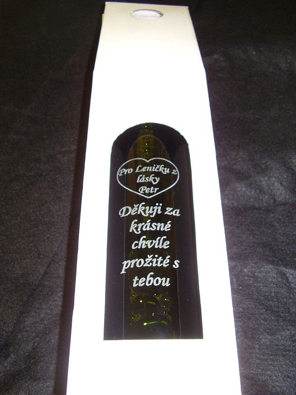 Nápis jak na srdíčku tak na láhvi zcela na vás.