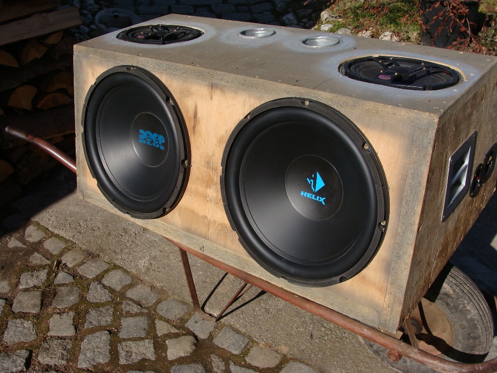 Dále výroba vlastního sobwooferu,na míru,repro 15´ Helix deep bluee 750w + mřížka.