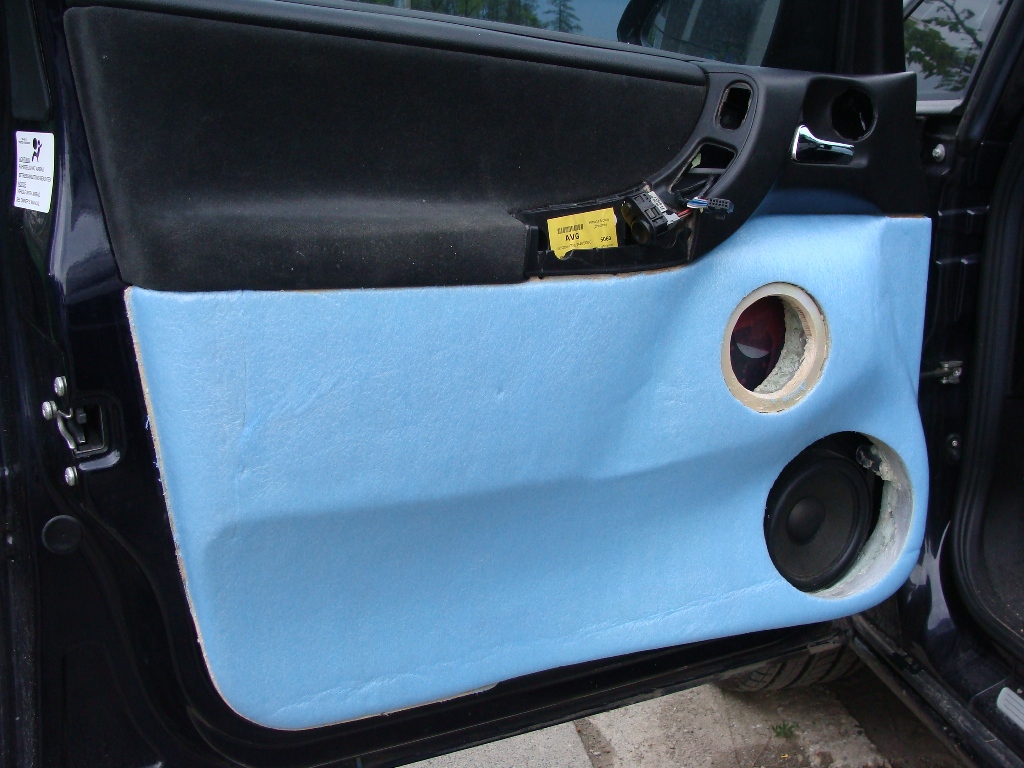 Instalace a zapojení 10 reproduktoru,výroba a montáž + vytlumení dveří a boků karoserie.