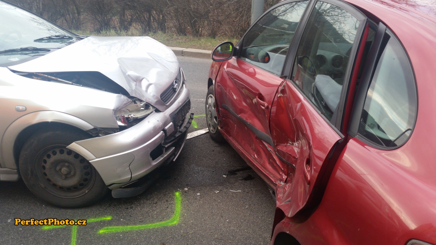 Chladič vytekl, ale motor jel dál. Airbagy nebouchly.